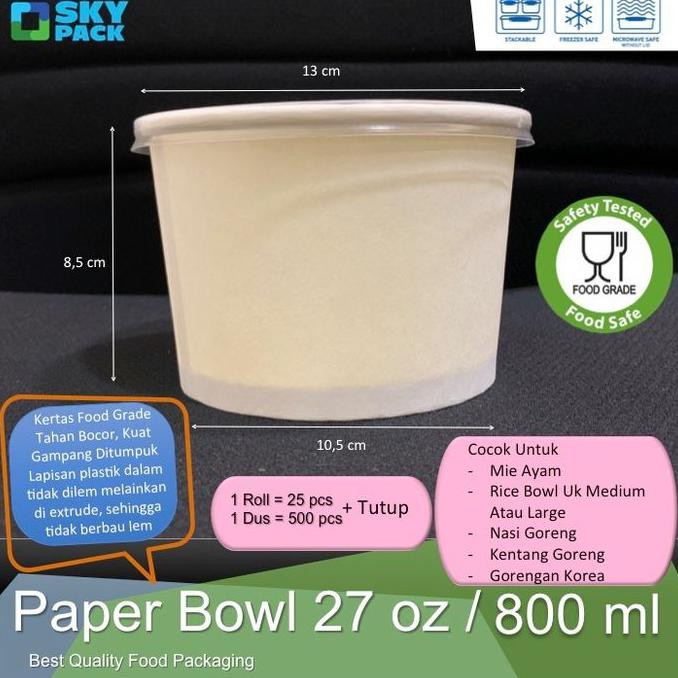 Paper Bowl 27 Oz 800 Ml Plus Tutup Shopee Indonesia