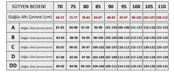 Sutyen Olcu Tablosu