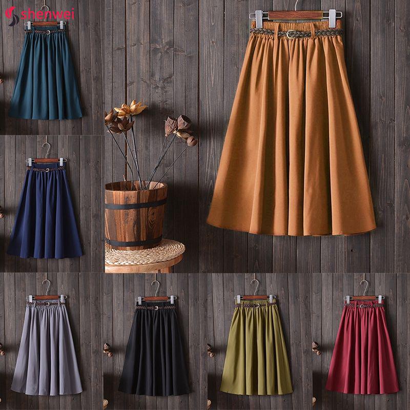 Rok Panjang Selutut Model High Waist Lipit Untuk Musim Panas Shopee Indonesia